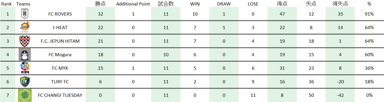 This is an amateur football league run by Japanese residents in Singapore. Teams compete in a league format throughout the year to crown the annual champion.