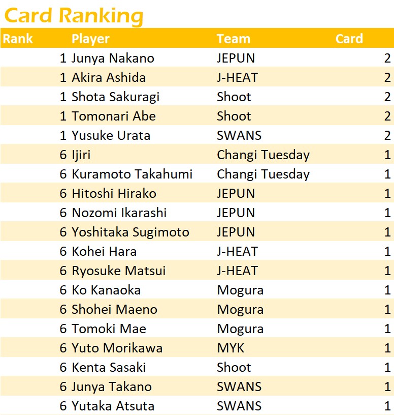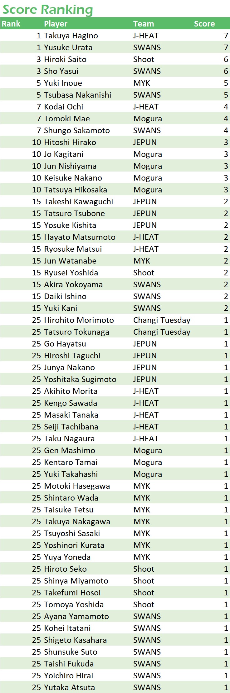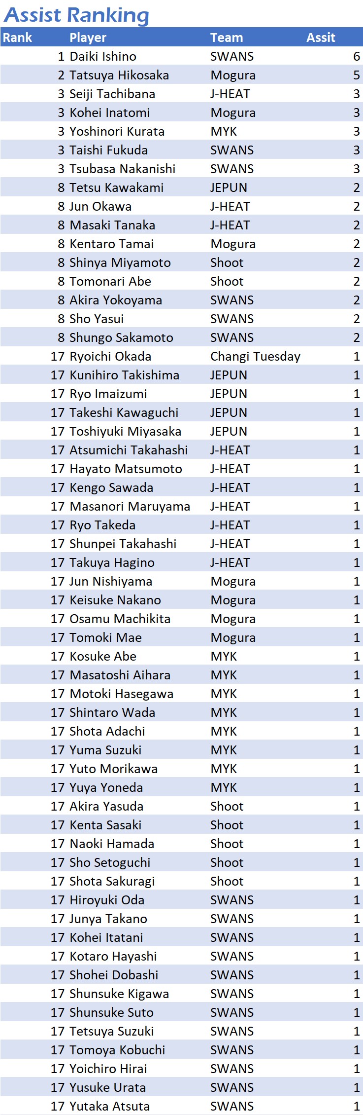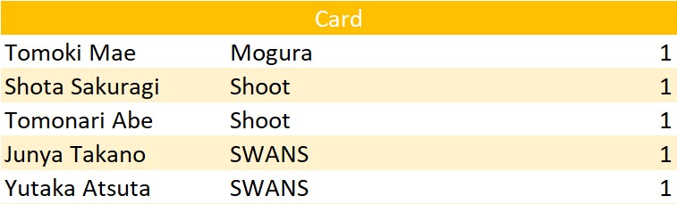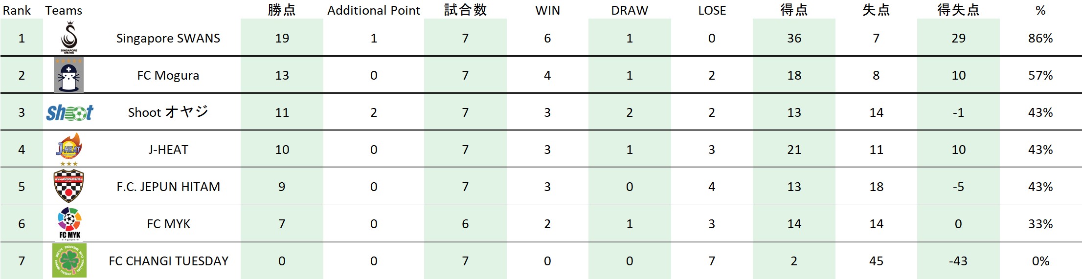 試合日程・結果 第7節 2022年9月17日(土)~9月25日(日) 2022年9月17日(土)~9月25日(日) Match Results * 第六節 JEPUN HITAM vs GFA SWANSは10...