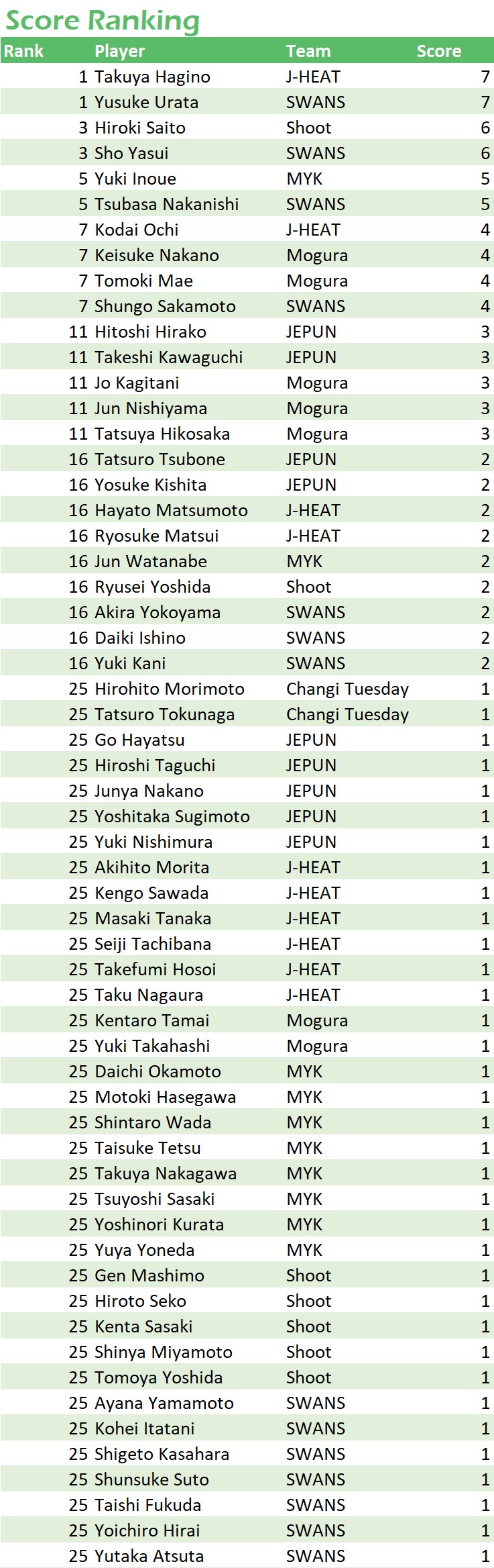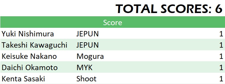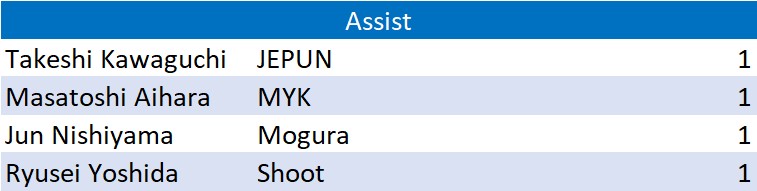 試合日程・結果 第6節 2022年9月3日(土)~9月11日(日) 2022年9月3日(土)~9月11日(日) Match Results Leader Board Scorers/Assisters Sco...