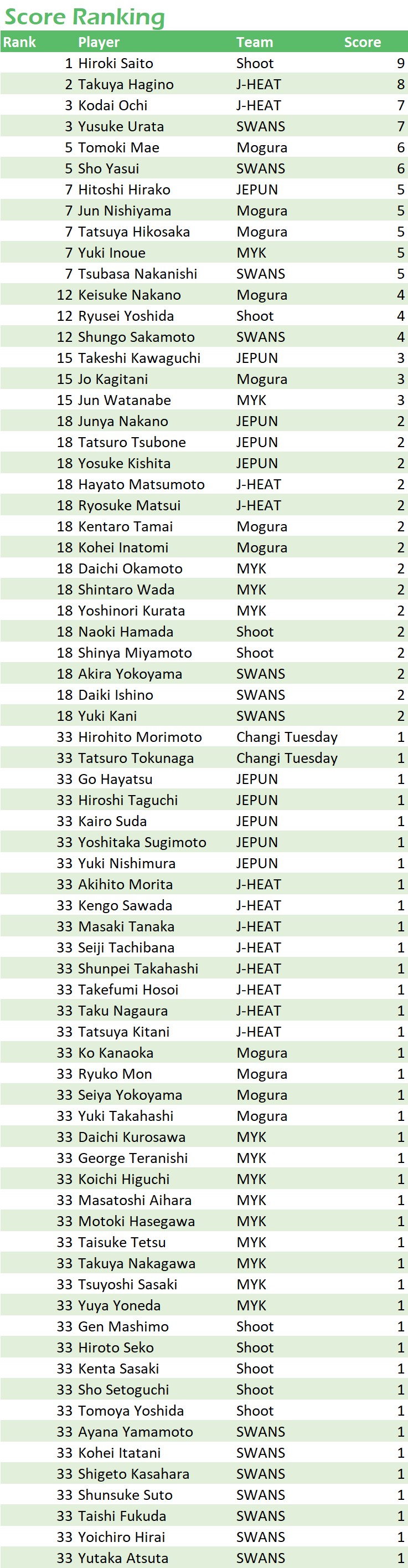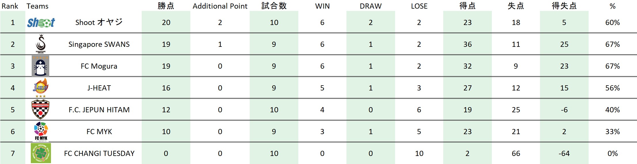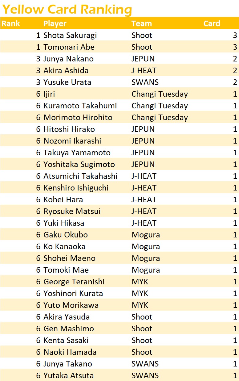 試合日程・結果 第9節 2022年10月15日(土)~10月23日(日) 2022年10月15日(土)~10月23日(日) Match Results * 第六節 JEPUN HITAM vs GFA SWANSは...