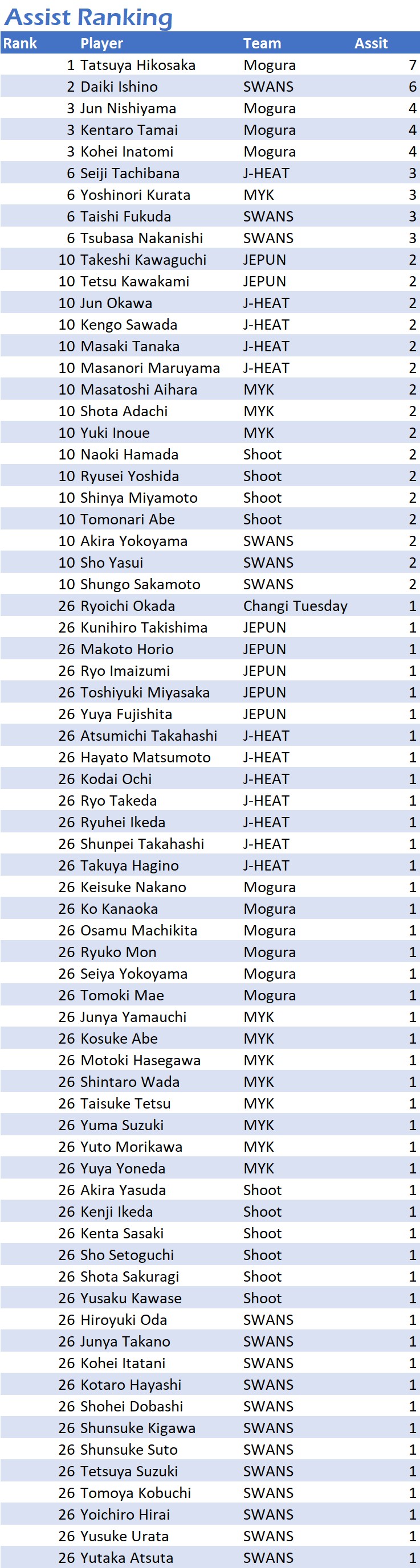 試合日程・結果 第11節 2023年10月14日(土)~10月22日(日) 第11節 2023年10月14日(土)~10月22日(日) Match Results Leader Board Scorers/Assisters Match Digest COMING SOON!!!!!! Scorer/Assister Ranking Photos Supported by:ことびあクリニック Facebook Twitter はてブ Pocket Feedly