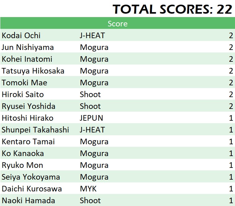 試合日程・結果 第1節 2022年6月4日(土)~6月11日(土) 2022年6月4日(土)~6月11日(土) Match Results Leader Board Scorers/Assisters Sco...